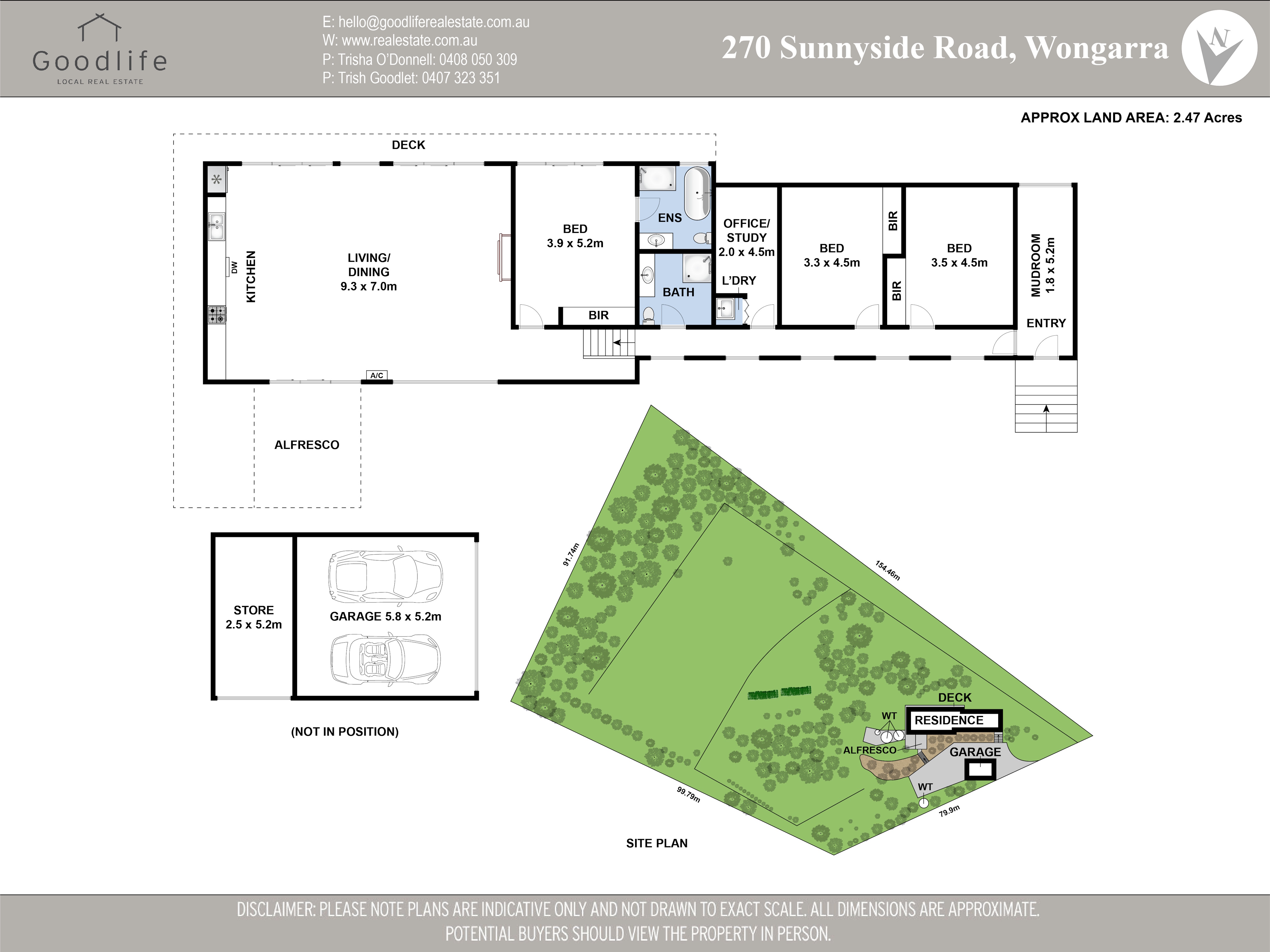 | 3 Beds | 2 Baths | Approx 2.47 Acres | 6 car spaces |